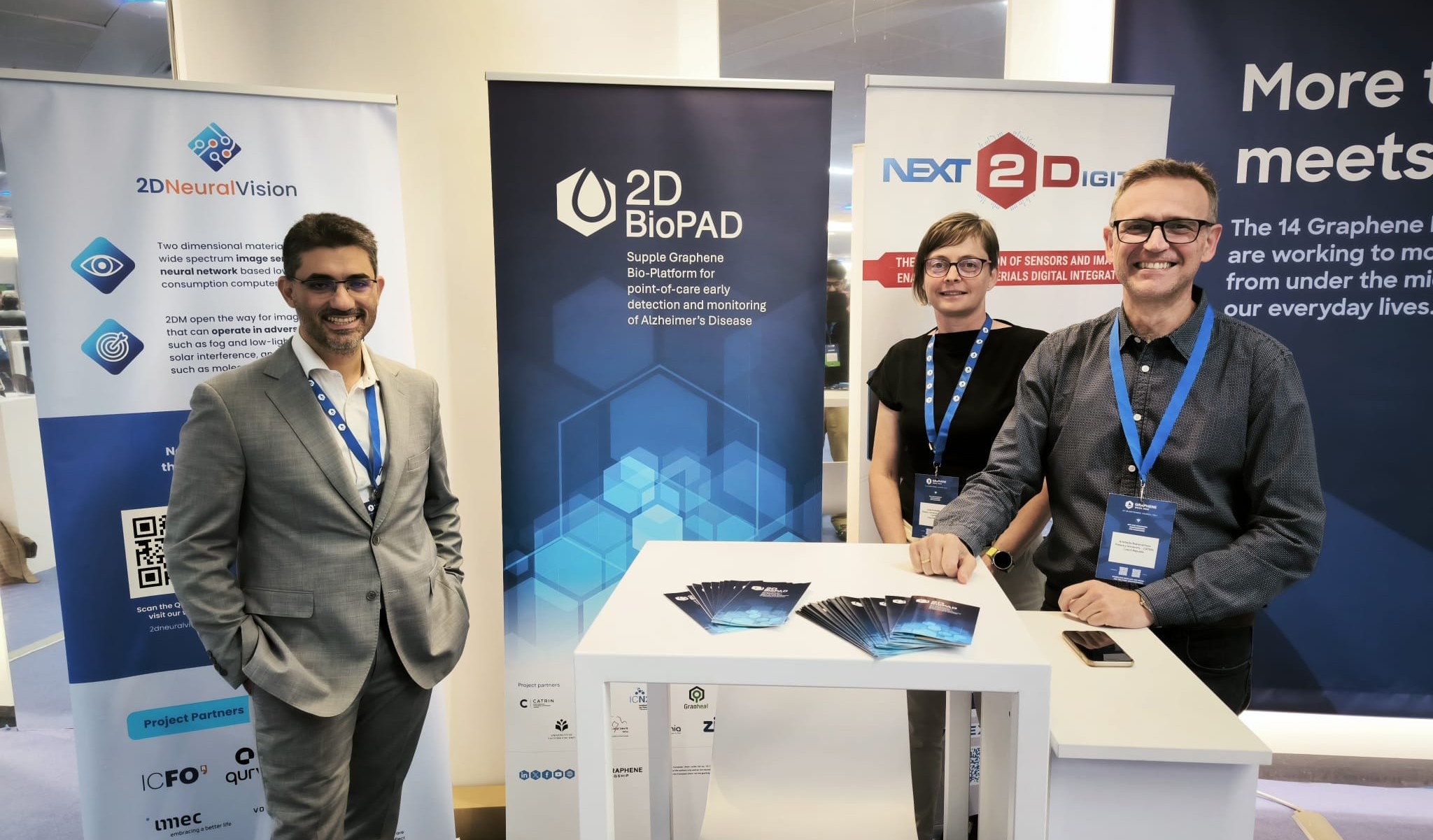 A key highlight of the week was the first public presentation of 2D-BioPAD’s GFET-based biosensor prototype, introduced by Vincent Bouchiat. This device can quickly check multiple AD biomarkers from a single blood sample. The sensor converts the results into digital data and sends them directly to a smartphone.